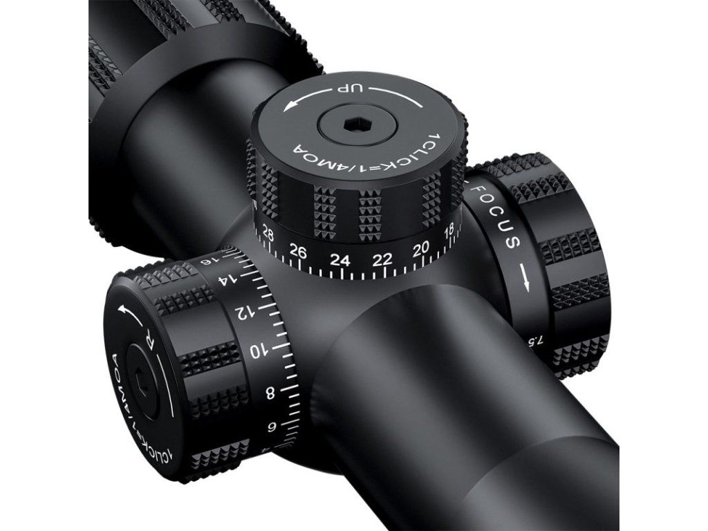 HD MAX 6-24x44 FFP má metrický systém nastavenia vyjadrený v MRAD. Cvaknutie hlavne o 1/4 MOA posúva zameriavací kríž o 1 palec na 100 yardov.